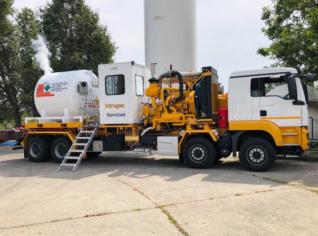 Nagy teljesítményű, tehergépkocsira szerelt nitrogén egységeink alkalmasak többek között: